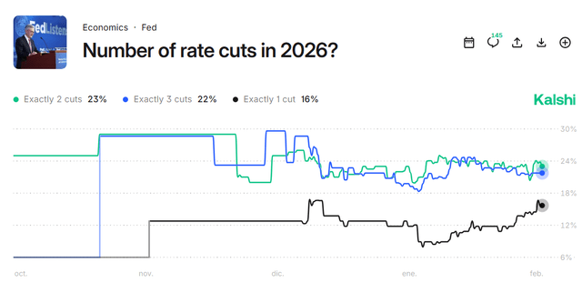 Warsh will cut interest rates a couple of times once he takes over at the Fed. He probably wants to initially please Trump. There’s no way of knowing what was said when Trump and Warsh were meeting over the past year, but I’d assume Trump has confidence that Warsh will cut interest rates and toe the party line in 2026. Again, market odds on the number of rate cuts in 2026 didn’t change at all once Warsh was already announced; the cake was already baked.