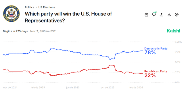 Note the decline in Republican odds since November 2025. We’ll come back to this in a minute when we get to the real reason why Trump picked Warsh.